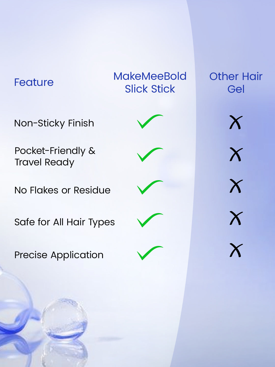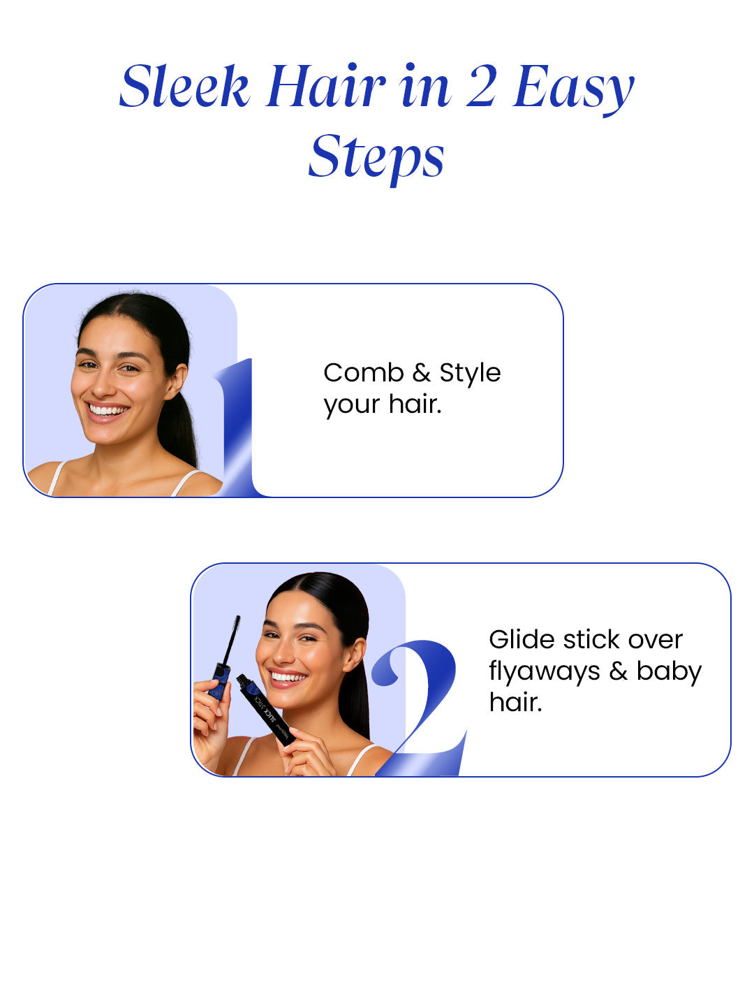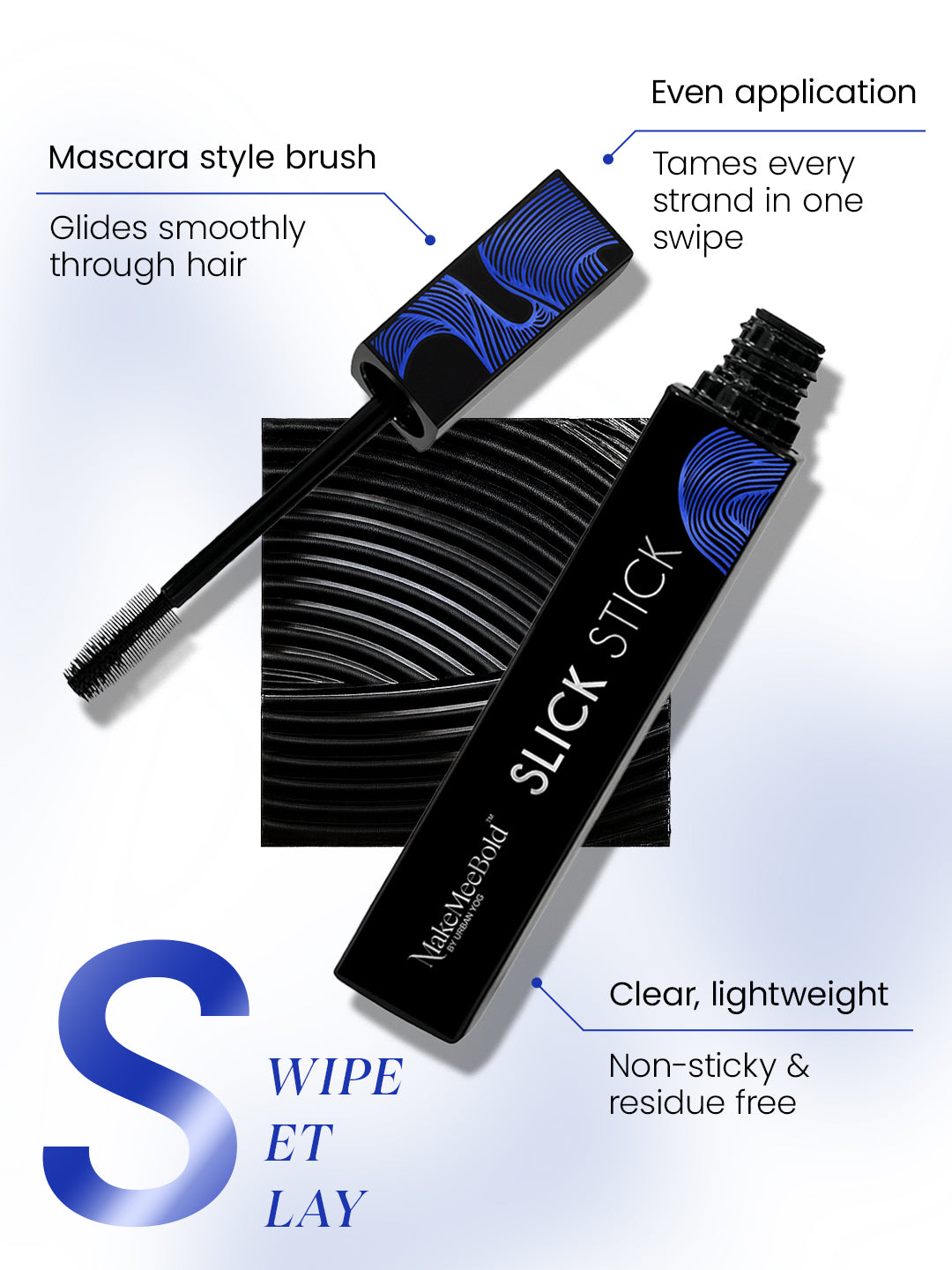 Tame frizz and flyaways in seconds with MakeMeeBold Slick Stick — your go-to hair tamer for a polished, sleek look anytime. Its non-sticky formula glides smoothly on baby hairs, flyaways, and frizz, leaving zero residue while keeping your style in place all day. This vegan, cruelty-free, paraben- and sulphate-free formula is enriched with Aloe Vera, D-Panthenol, Centella Asiatica, and Banana Extract, which nourish your strands while giving a smooth finish. Perfect for quick touch-ups, work days, parties, or travel — just Swipe. Set. Slay.